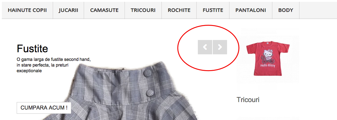 standdowncafe Posted May 8, 2015 Author Share Posted May 8, 2015 (edited) Hi there Pascal, I am accessing my shop from various laptops, tablets or any gadget ... still missing arrows, see for your self http://pentruprichindei.ro/ Later Edit - no errors found as you recommended to look for. Edited May 8, 2015 by standdowncafe (see edit history) Link to comment Share on other sites More sharing options...