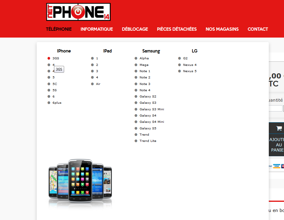 Opalie Posted May 13, 2015 Author Share Posted May 13, 2015 Bonjour Votre remarque est intéressante! J'utilise la navigation à facette justement, et ce que je souhaite c'est que le client n'utilise que le menu du haut (blocktopmenu) avec le système de menu déroulant comme ceci : Pour arriver ici directement, ce qui laisse au visiteur le choix de la catégorie de produit grâce à la navigation à facette : J'espère que c'est plus clair ^^ En tout cas je ne peux pas me permettre de supprimer mes catégories. Mon arborescence est très importante car les produits sont les mêmes mais les prix diffèrent selon le modèle du téléphone (c'est de la réparation c'est pour ça ) Link to comment Share on other sites More sharing options...