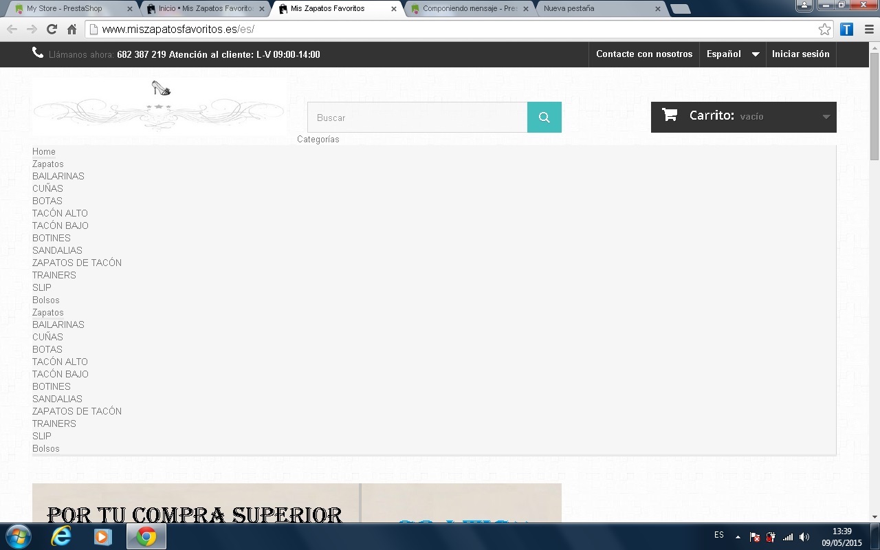 MisZapatosFavoritos Posted May 11, 2015 Author Share Posted May 11, 2015 Muchas gracias por contestar pero me podrias decir como se hace eso? esque no soy muy experta en prestashop Link to comment Share on other sites More sharing options...