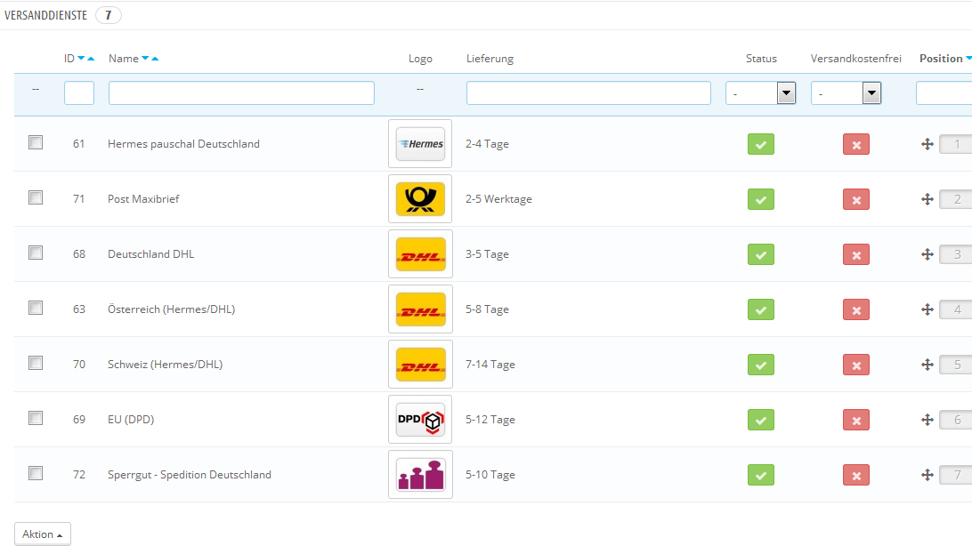 kulli Posted May 12, 2015 Share Posted May 12, 2015 willkommen bei den Versanddiensten Versanddienste-Gebiete und Kosten dort die Gebiete zuweisen wenn Du für ein spezielles Land eigene Kosten habe willst must Du dieses Land als neues Gebiet anlegen und natürlich in den Ländereinstellungen dem neuen gebiet zuweisen; als Beispiel: ich habe ein Gebiet Deutschland angelegt und das Land Deutschland diesem Gebiet zugewiesen. (Die Einstellungen hierfür sind in Lokalisierung - Gebiete und Länder) das gleiche habe ich für Schweiz und Österreich gemacht, damit ich diesen Ländern andere V-Kosten zuweisen kann als dem Rest der EU ist ne Menge Arbeit aber die macht man ja nur einmal bei mir sieht das dann so aus: 1 Link to comment Share on other sites More sharing options...