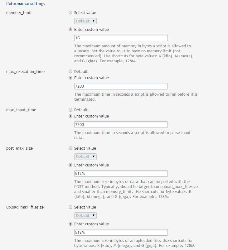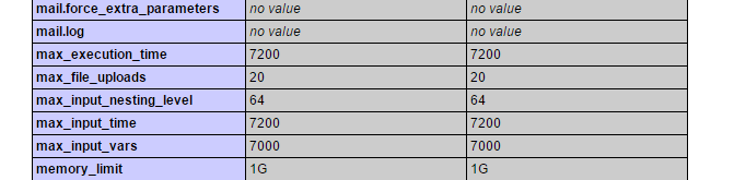 reijo Posted May 18, 2015 Author Share Posted May 18, 2015 el max_execution_time ya lo tengo cambiado, esta en 7200 segundos, pero hice varias pruebas cronometradas y sobre los 450 segundos da el error. También tengo cambiado el max_input_time a 7200 segundos, pero nada, te lo muestro en esta captura de un phpinfo(). ¿Existe algún otro tipo de configuración que pueda cambiar? Si no me queda otra, muy a mi pesar tendré que migrar de servidor... Link to comment Share on other sites More sharing options...