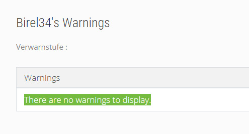lies doch bitte meinen post#2 weiter oben durch, dort steht alles drin ("du hast 0 Verwarnpunkte deshalb siehst du bei dir nur das Wort Verwarnstufe ohne eine Zahl dahinter.").