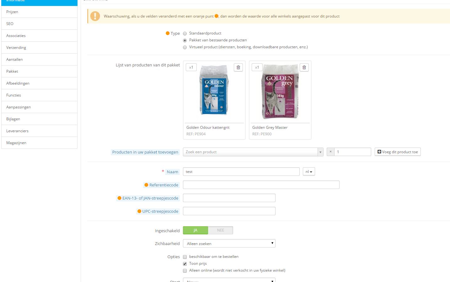 Ik heb een pakket van 3 bestaande producten aangemaakt zoals beschreven in de handleiding echter bij de weergave in de shop zou onder inhoud dan de producten moeten komen te staan die in de bundel zitten. Hier wordt maar 1 product weergegeven. Iemand een idee wat er fout gaat of hoe ik het kan oplossen. versie 1.6.0.14