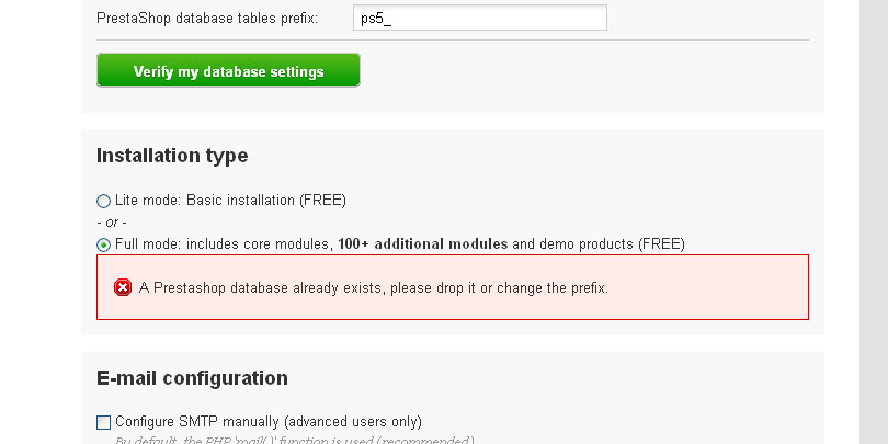 Saya ingin pasang prestashop versi 1.4.8.2 tapi sudah berkali kali install selalu Error di Step 3, padahal saya pernah coba beberapa bulan lalu ga ada maslah, sekarang malah ga bisa, kira kira apa masalahnya