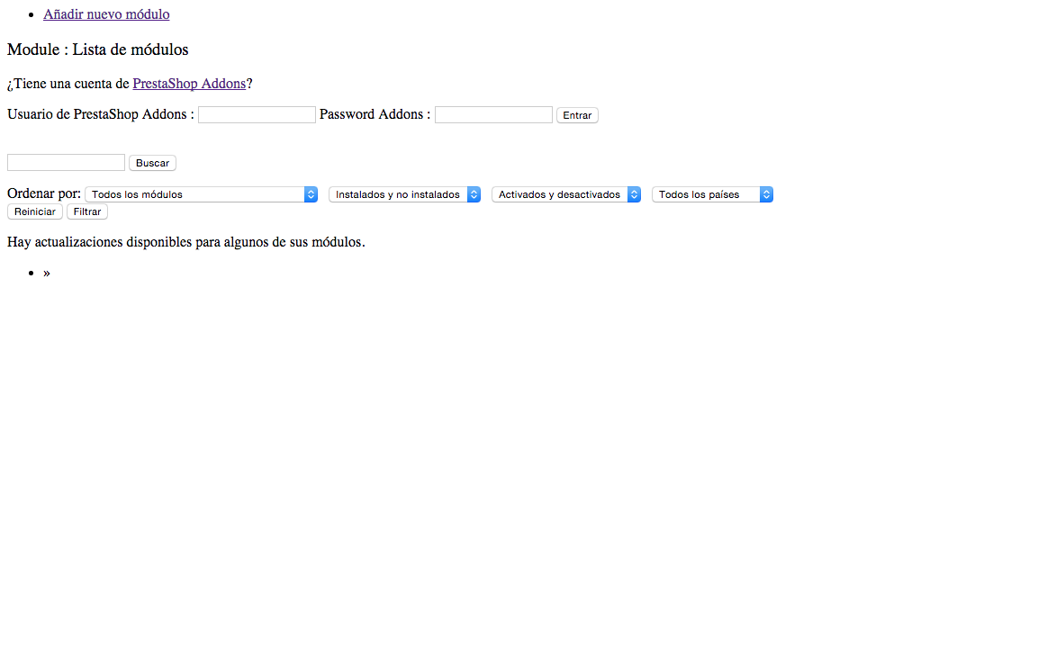 mexside Posted July 21, 2015 Share Posted July 21, 2015 Saludos yo tengo el mismo problema. mi disco duro del servidor trono pero recupere las cuentas y solo hice restore, cuando entro al area de modulos solo me muestra la imagen que les pondre a continuación ya sobre escribí todos los modulos y mensajes de error no me da el prestashop, tambien el log de errores no marca la tienda es www.tintasytoner.org Link to comment Share on other sites More sharing options...