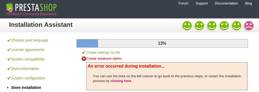 Cannot install ps 1.6.0.9, 1.6.0.13 or 1.6.0.14 create table 13%