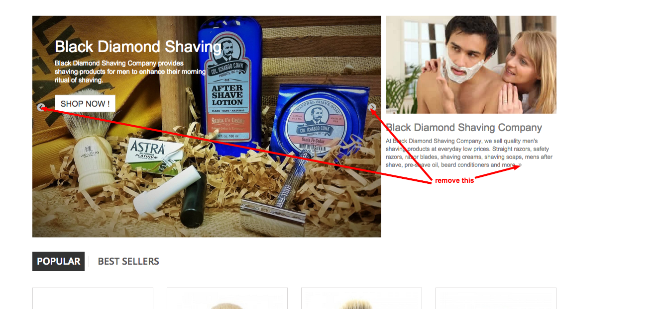dothanby Posted May 20, 2015 Share Posted May 20, 2015 site http://blackdiamondshaving.com ver 1.6 Please see attached image I have tried and tried to remove these arrows with no luck. Can't find right area looking with firebog. Link to comment Share on other sites More sharing options...