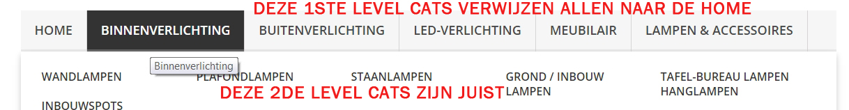 pedes Posted May 26, 2015 Share Posted May 26, 2015 (edited) Ik heb een standaard prestashop met mijn producten in en gebruik dus het standaard topmenu. Het menu bevat de home (die uit klapt en de categorien toont) en naast de home staan de 1ste level hoofd categorien. Maar deze krijgen geen juiste url toegegwezen, ze verwijzen steeds weer naar de home pagina. Ze zouden dus in principe naar de categorie pagina moeten verwijzen. Die categorie pagina's bestaan, de urls bestaan en werken, maar achter de naam in het topmenu blijft steeds de de home url zitten. Hoe kan ik dit oplossen? 2de level categorien hebben wel hun juiste url. hier vind u de shop: https://goo.gl/fi0ncQ Mvg, Pete Edited May 27, 2015 by pedes (see edit history) Link to comment Share on other sites More sharing options...