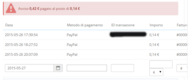 morpheus74 Posted May 27, 2015 Share Posted May 27, 2015 Salve a tutti, ho un problema nella sezione dettagli ordini del mio shop. In pratica si verifica il problema evidenziato nell'immagine allegato. Ho effettuato un acquisto di test pagano attaverso paypal. La transazione è andata a buon fine ma quando vado a modificare lo stato dell'ordine viene aggiunto un nuova volce all'interno del pannello Pagamento (come da foto).Avete idea di come risolvere questo fastidioso problema ? Grazie a tutti coloro che mi vorranno dare una mano. Ciao Francesco Link to comment Share on other sites More sharing options...
