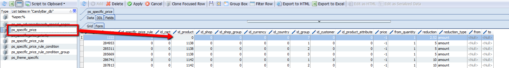 Could you please check ps_specific_price table.  There might be 0 value provided in id_product, at it is shown at the screenshot.