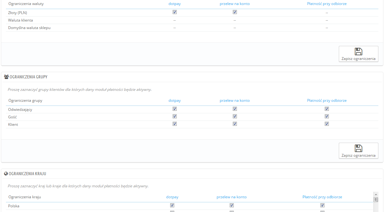 Myślę, że jeszcze gdzieś musi siedzieć dodatkowe ustawienie - np łączące metodę płatności z krajem, magazynem, dostawcą, walutą.