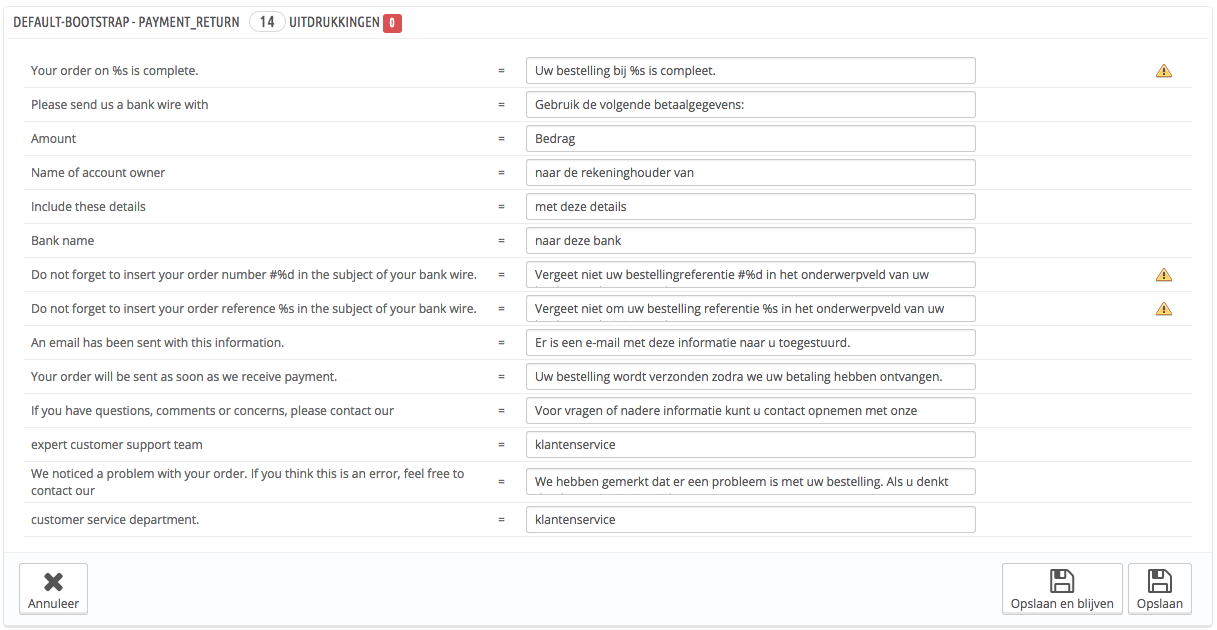 Ik wil de tekst 'your order on .... is complete' in het NL, verder staat alles netjes in NL.