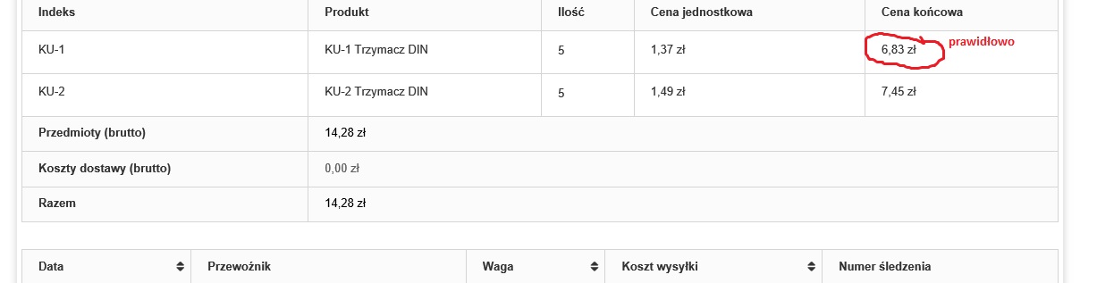 Witam, mam problem ze złym wyświetlaniem wartości brutto poszczególnych pozycji w mailach i podsumowaniu zamówienia backoffice.