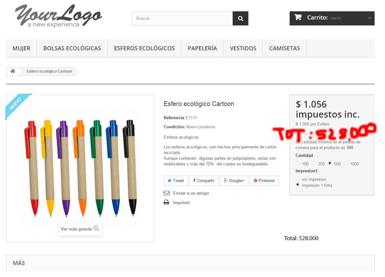 espero me entiendan adjunto imágen es muy importante para mis clientes ver el total antes de comprar..