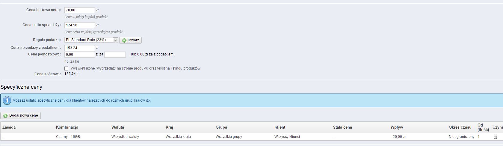 Mój silnik sklepu to 1.5.4.1. Sprawdzałem na czystej instalacji i problem tam też występuje, więc wina nie leży w mojej skórce. (Chyba, że ja nie rozumiem ustalania cen promocyjnych)