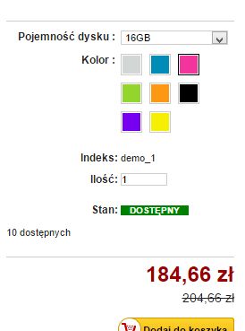 ale na pozostałych atrybutach zamiast wyświetlania starych cen, tzn 180 zł i 220 pojawia się również pomniejszona cena, a stara jest przekreślona.