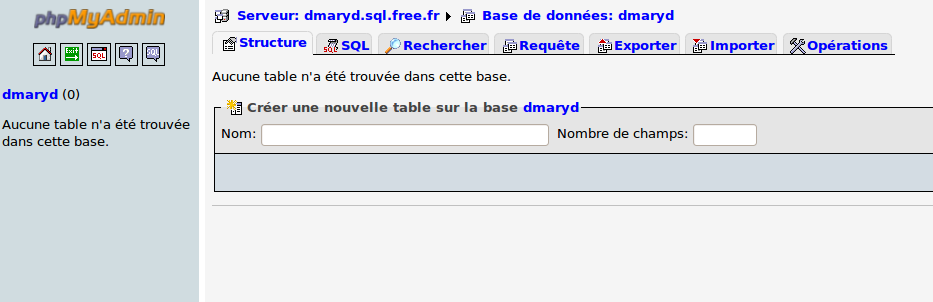 Oron Posted June 9, 2015 Share Posted June 9, 2015 Bonjour Pour la base de donnée dmaryd c"est le nom de votre base de donnée, vous n'avez pas besoin de créer une base de donnée dmaryd.sql.free.fr c'est le nom du serveur de la base de donnée. Pour la parse error renvoyer sur le ftp le dossier install, ça peut résoudre votre problème, par contre les pages perso de free ne sont pas fait pour installer un e-ciommerce. Aucune garantie de réussir et cela n'a rien à voir avec prestashop mais free qui peut bloquer l'installation d'un e-commerce. Link to comment Share on other sites More sharing options...