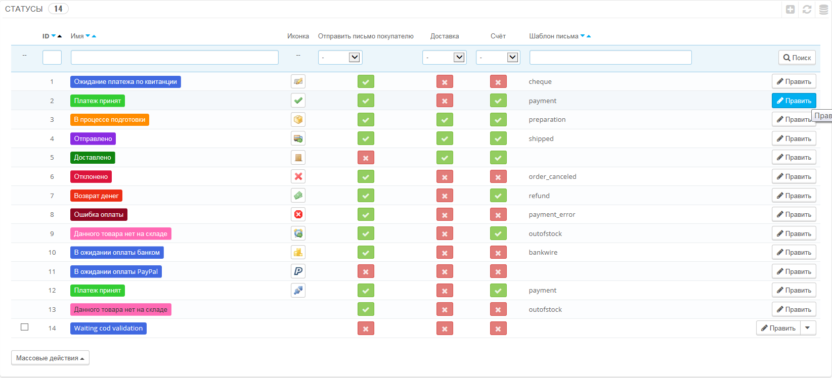 sergeyspb2012 Posted June 9, 2015 Share Posted June 9, 2015 Здравствуйте. Кто-нибудь подскажет как можно удалить часть лишних статусов в админке? Почему то возможность удаления присутствует только у одного статуса из всех(см. скриншот) Link to comment Share on other sites More sharing options...