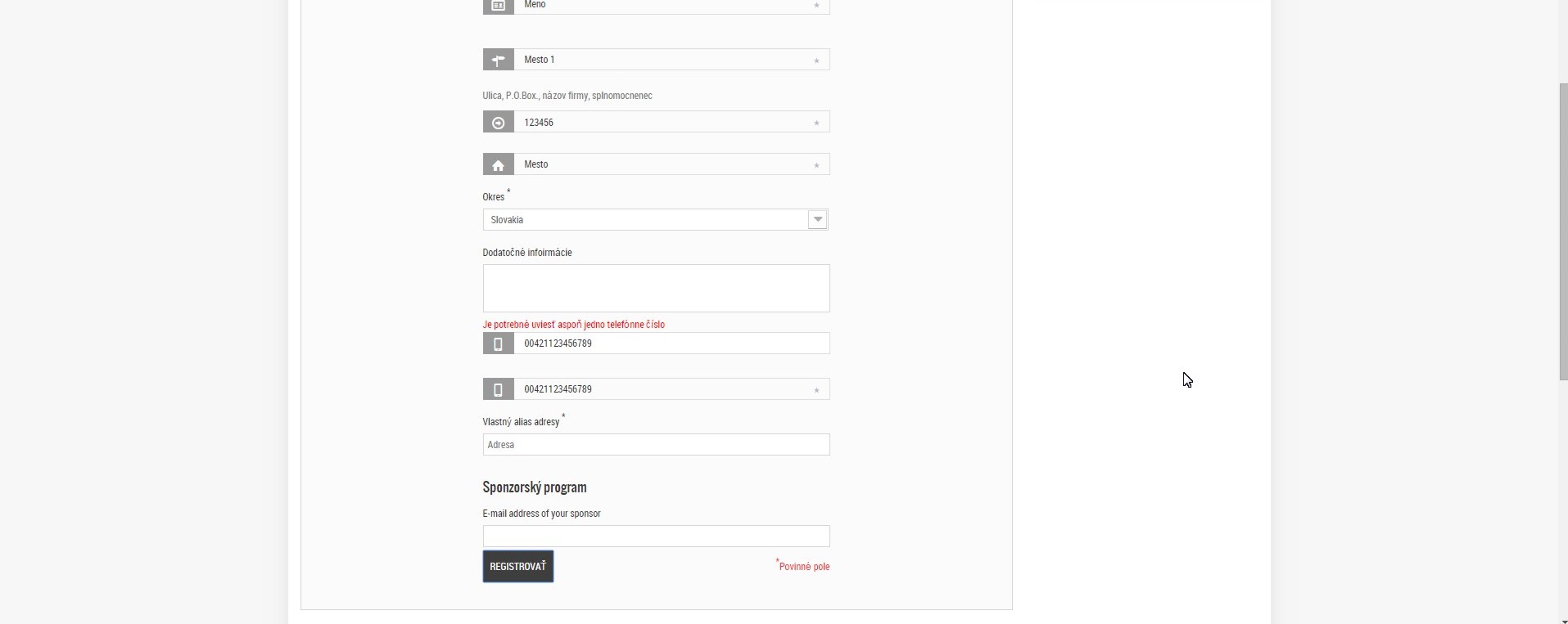 Patrik179 Posted June 11, 2015 Author Share Posted June 11, 2015 Funguje mi to ak nastavím povinné IČ DPH firmy. Ale keď príde obyčajný zákazník a nemá firmu resp. nemá IČ DPH a nevyplní ho tak pýta dopísanie IČ DPH. Ako nastaviť aby IČ DPH nebolo povinné pre obyčajného zákazníka? Link to comment Share on other sites More sharing options...