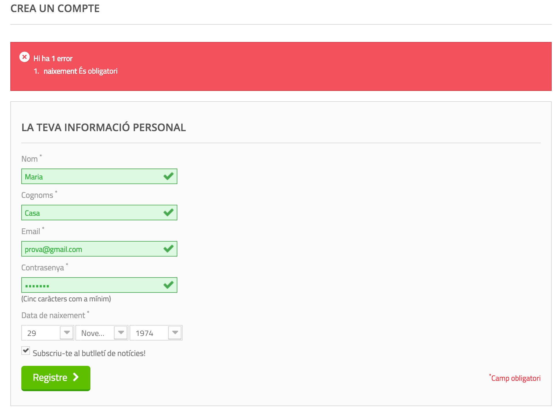 isasimo Posted June 10, 2015 Share Posted June 10, 2015 (edited) I need to set up the birthday as a required field for new customers in prestashop 1.6.0.8. I tried some code from other posts like these ones: https://www.prestashop.com/forums/topic/436711-make-birthday-a-required-field/ or https://www.prestashop.com/forums/topic/276280-setting-required-fields-in-customer-registration/ What I have done until now is:In authentication.tpl: <div class="required form-group"> <label>{l s='Date of Birth'} <sup>*</sup></label> This added the * in the label. But it seems that the “required" class doesn’t affect at all… I added the same in both places from this file. And also in these other files:identity.tplorder-opc-new-account.tplin classes/Customer.php: 'birthday' => array('type' => self::TYPE_DATE, 'validate' => 'isBirthDate', 'required' => true), With this the birthday is a required field, but even when the field is not empty it still says "there is an error, the birthday is required”. And the user can not sign up (attached a screenshot).Any ideas about that? Everything will be welcome with a big hurrah! Edited June 10, 2015 by isasimo (see edit history) 1 Link to comment Share on other sites More sharing options...