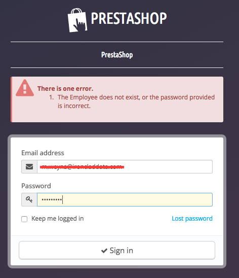 I got my shop setup yesterday (yay) but whenever I attempt to mange it and set it up I cannot login (boo). Whenever I attempt to login to the site I get the "1. The Employee does not exist, or the password provided is incorrect." error.