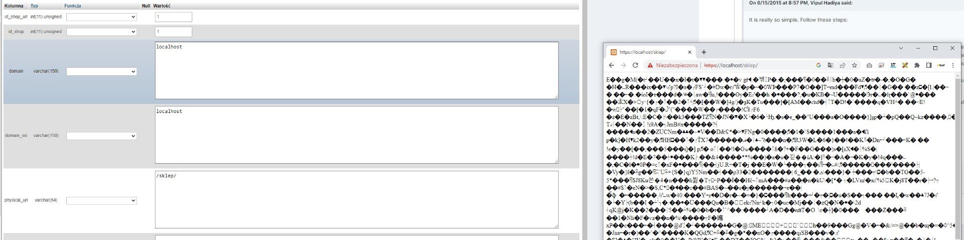 4. For domain => localhost, domain_ssl=.localhost, physical_uri => /presta/