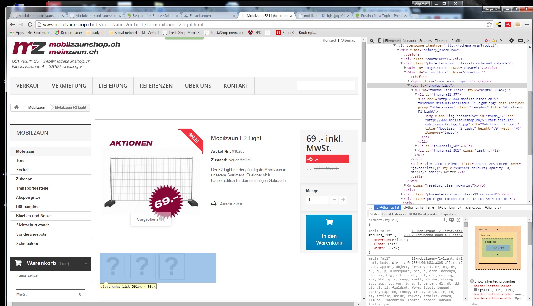 mobilzaunshop Posted June 17, 2015 Share Posted June 17, 2015 (edited) Hi there I couldn't find a proper solution for the following problem, thumbnails (preview thumb) are displayed as question marks (check uploaded screen-shot) I've just updated my store from 1.4 to 1.6 with the 1-klick-auto-updater. There have been several bugs, which I succeed to resolve but this one. Thanks for your help Edited June 17, 2015 by mobilzaunshop (see edit history) Link to comment Share on other sites More sharing options...