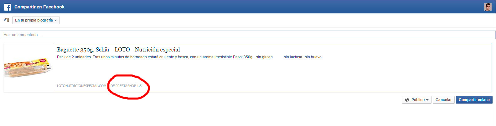droke Posted June 17, 2015 Share Posted June 17, 2015 It´s just it. How I can remove DE PRESTASHOP 1.5 when I share products on Facebook? My site: www.lotonutricionespecial.com Link to comment Share on other sites More sharing options...