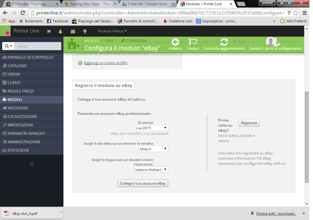 Printerline Posted June 18, 2015 Share Posted June 18, 2015 Buongiorno a tutti, ho uno strano "errore" sul mio modulo ebay: screenshots in allegato Quando clicco su collega account ad ebay mi risponde che un account con questo segno e con questo ebay esiste gia, prima lo usavo con un altro account di ebay, ma anche se cerco di collegare quello preesistente l'errore è lo stesso. Cosa vuoldire? o meglio cosa devo fare? Grazie ragazzi Link to comment Share on other sites More sharing options...