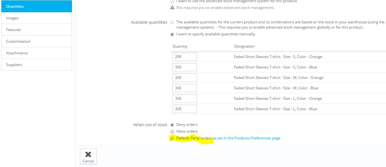 I can't find the "action when out of stock value". I tried "depends on stock" but this has to do with the advanced store modus. I use the default modus.
