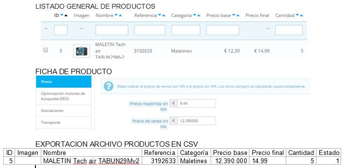 [email protected] Posted June 22, 2015 Share Posted June 22, 2015 Hola tengo problemas con los caracteres "." punto y "," coma, para delimitar los decimales, en el listado de productos los campos precio base, precio final, figuran con "," decimal, para separar los dos decimales, y sin embargo dentro de la ficha del producto apartado precio mayorista sin iva y precio de venta sin iva, delimita los decimales con "." punto, apareciendo precio mayorista sin iva "9.44" y precio de venta sin iva "12.390000", añadiendo ceros a la derecha automáticamente, cuando debería ser "12,39", por lo que el precio de venta cuando se realiza una exportación de la tabla de productos en csv aparece también el precio base 12.390.000 y el precio final aparece "14.99" separando decimales con un "." punto. He revisado si se puede configurar en el backoffice la cantidad de decimales, el caracter de separación etc, y no se como solucionarlo. Alguien me podría ayudar, estoy atascado y no puedo avanzar. Os adjunto imagen. Un saludo y gracias. Link to comment Share on other sites More sharing options...