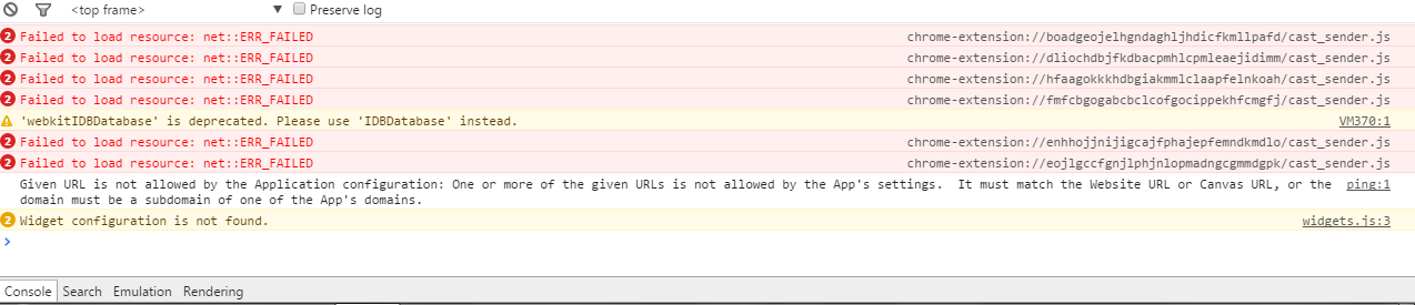 musicmaster Posted June 24, 2015 Share Posted June 24, 2015 These errors have nothing to do with Prestashop. See http://stackoverflow.com/questions/24490323/google-chrome-cast-sender-error-if-chrome-cast-extension-is-not-installed-or-usi As this is a Chrome related error you might look if your site runs better within a Chrome browser. You should switch _PS_MODE_DEV_ in the file config\defines.inc.php to true and look for php errors. If you don't see them straight away you should look in the source code of the pages. Link to comment Share on other sites More sharing options...