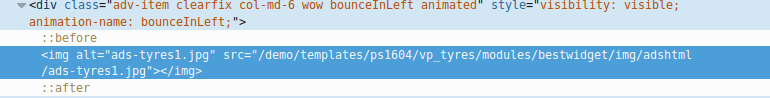 SkylineDiT Posted June 26, 2015 Author Share Posted June 26, 2015 1) you also managed some module instances under modules > positions ? for example, in displayHeader hook? 2) you changed pictures only? nothing in addition? 3) this is a part of default theme configurator module? No I didnt managed module instances. I changed just pictures only. Yes it was default theme I bought VP_tyres theme and in CMS->widgets I added one picture and something got worng with DIV form <div style="visibility: visible; animation-name: bounceInRight;" class="adv-item clearfix col-md-6 wow bounceInRight animated"> it became like this <div class="adv-item clearfix "> Link to comment Share on other sites More sharing options...