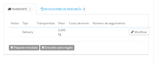 mery_zgz Posted June 26, 2015 Share Posted June 26, 2015 Hola! Tengo un problemilla con un apartado de mi tienda online. Resulta que han hecho un pedido y en la parte donde debería poner el transporte únicamente me sale Delivery y el peso a 0.000 kg. Adjunto imagen. Se me hace raro como ha podido pasar ya que en las pruebas realizadas si que aparece el transporte elegido. Y el transporte es una opción que tienen que elegir si o si a la hora de hacer la compra. He mirado el peso del producto, no vaya a ser que no estuviera asignado pero si que está bien... Solo tengo un pedido por que la tienda es nueva así que tampoco se si pasaría alguna vez más. Alguna idea? Os ha pasado a alguien? Espero vuestra respuesta. Gracias!! Link to comment Share on other sites More sharing options...