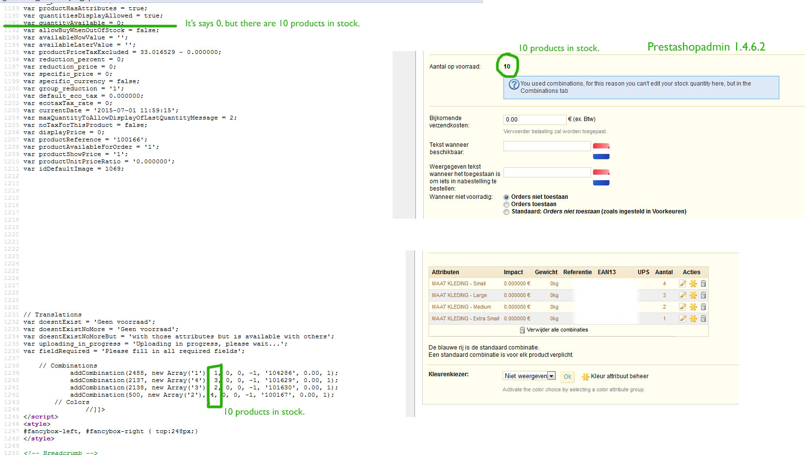 invpts3 Posted June 26, 2015 Share Posted June 26, 2015 (edited) Hi there, having prestashop 1.4.6.2 I'm having a problem with the "var quantityavailable" that seems to give incorrect information in the source code. There's a feedrobot crawling our pages, but every product with "var quantityavailable = 0" is not added to the feed. By some reason we have products with a stock, but in the sourcecode it says "var quantityavailable = 0" Looks like it has to do with sizes and attributes. Attached is a screenshot that shows a product with a quantityavailable = 0, while in fact there are 10 products in stock. What could this possibly be? Edited July 1, 2015 by invpts3 (see edit history) Link to comment Share on other sites More sharing options...