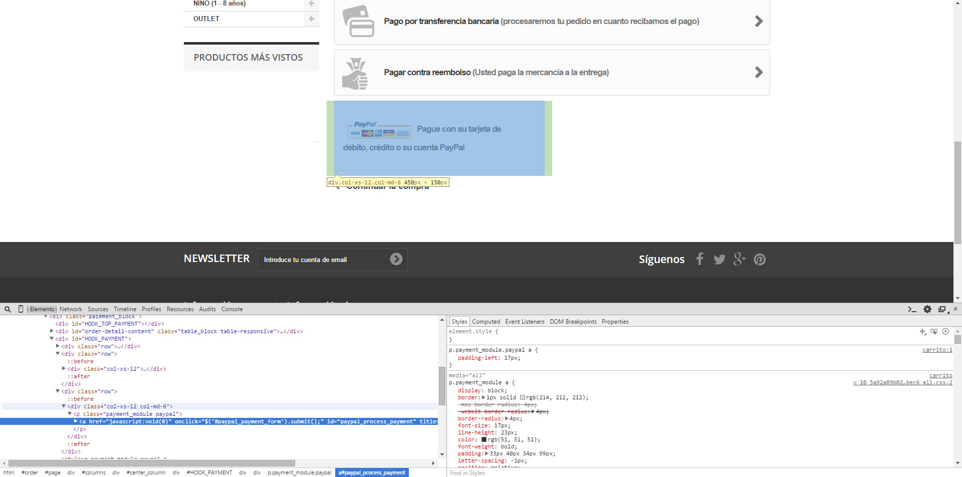 amiraco Posted July 6, 2015 Share Posted July 6, 2015 (edited) Me too! I've checked the same problem. I'm not web programer. Anyway I can see this: The question mark appear because there is a broken link to a directory that no exist. <img src="http://www.yourdomain.com/modules/paypal/views/img/logos/express_checkout_mobile/CO_en_US_orange_295x43.png"> where "express_checkout_mobile/CO_en_US_orange_295x43.png" does not exist. There is another problem with this module. If you want to process the order on a desktop instead a movil device, the Paypal payment frame is half long than others like banckwire or cash on delivery. The cause is this row has a DIV <div class="col-xs-12 col-md-6"> instead a <div class="col-xs-12"> (See attached) Can anyone help? Thanks. Edited July 6, 2015 by amiraco (see edit history) Link to comment Share on other sites More sharing options...