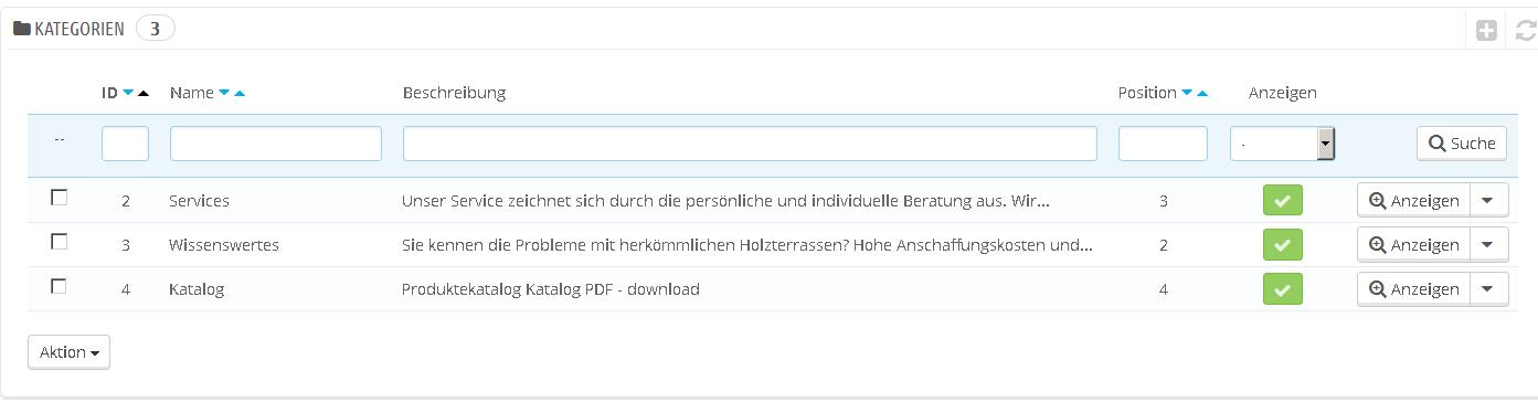 hansjuerg.arnold Posted June 29, 2015 Share Posted June 29, 2015 (edited) Hallo zusammen Ich basiere auf 1.6.0.9 und dem Default - Thema, wo ich im Hauptmenu aktuell 2 Kategorien (Produkte, Musterbox) 2 CMS - Menues (Services, Wissenswertes) habe. Nun habe ich ein weiteres CMS - Menu (Katalog) angelegt, welches einfach nicht angezeigt wird. Habe ich da eine Einstellung übersehen oder gibt es eine maximale Anzahl möglicher Menus ? Vielen Dank Hansjürg Edited June 29, 2015 by hansjuerg.arnold (see edit history) Link to comment Share on other sites More sharing options...
