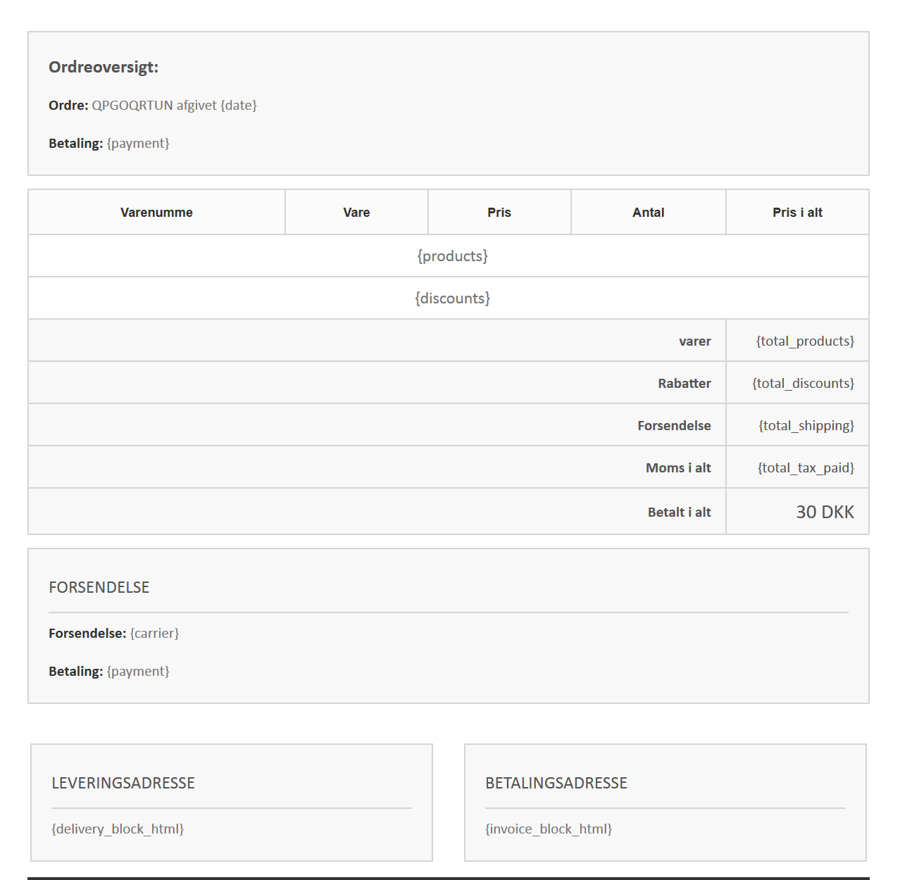 Playshop Posted June 29, 2015 Share Posted June 29, 2015 Hi I have missing variables when using a new email template. I have renamed order_conf to order_conf2 and changed some text in the header and footer, and added the “new email template” to a new status. But when using the status, the email sent to the customer has missing variables. See picture. I have been searching for a solution but without any luck, although several have similar problems. My order process (goal) When a costumer make an order: The automatic order confirmation email is changes into “your order is received” (I do not want to confirm the order before checking my inventory). Working perfectly, all variables from order_conf is showed correctly. After checking my inventory: (where my problem is) I change the status in back office to a new self-made status, (order confirmation and invoice) with the new email template: order_conf2. Not working perfectly = missing data: {products}, {total_products}, {delivery_block_html} etc. is showed in the the email sent to the customer. When the order is ready to be shipped: A tracking number is sent to the customer. Working perfectly I am using Prestashop 1.6.0.14 – custom theme (megashop) Looking forward to hear from you Regards Link to comment Share on other sites More sharing options...