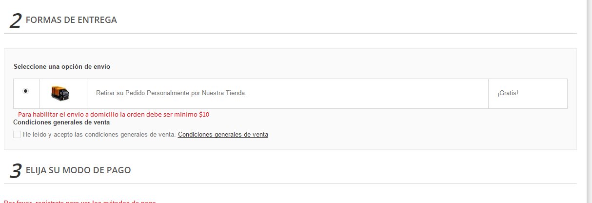 chucurulo Posted June 29, 2015 Share Posted June 29, 2015 (edited) hola amigos en mi pagina tengo tengo un minimo de orden para habilitar el envio a domicilio, lo cual me funciona perfectamente, pero el caso es que quiero informarle al cliente que para que le active el envio debe sobrepasar $10. y quiero agregar un texto informativo en el pie del box de seleccion de envio. agrego una imagen de mas o menos de lo que deseo, quiro agragerle el texto que esta en color rojo en la imagen. que archivo debo modificar para esto. gracias de ante mano por su ayuda Edited June 29, 2015 by chucurulo (see edit history) Link to comment Share on other sites More sharing options...