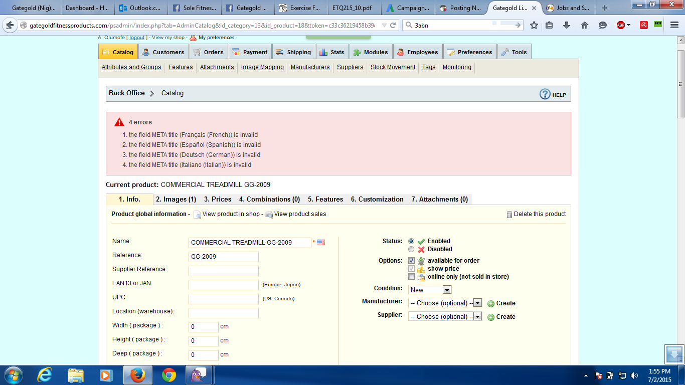 Ayojewel Posted July 2, 2015 Share Posted July 2, 2015 (edited) Hello When i want to add products in prestashop 1.4, i get errors like these. the field META title (Français (French)) is invalid the field META title (Español (Spanish)) is invalid the field META title (Deutsch (German)) is invalid the field META title (Italiano (Italian)) is invalid How do i solve this. Any help will be appreciated. Edited July 2, 2015 by Ayojewel (see edit history) Link to comment Share on other sites More sharing options...