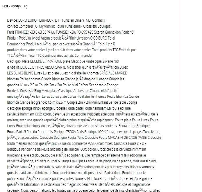 ZIED Posted July 3, 2015 Share Posted July 3, 2015 Bonjour, Je travailler le seo du site www.foutatunisia.com mais je bloque sur la façon dont google vois mon site. En faisant le test sur seorch.eu je remarque que mon Text - <body> Tag est presque incompressible à la différence des sites bien positionner le body est bien lisible et structurer aussi il y a un problème de codage avec les avec les accents uniquement dans le Text - <body> Tag Comment faire pour bien structurer ce body ? merci Link to comment Share on other sites More sharing options...
