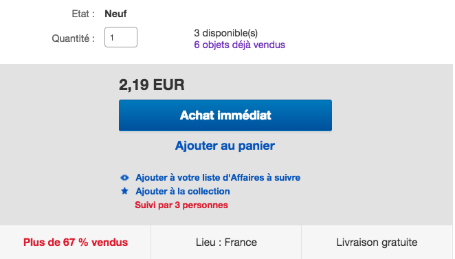 Prestalia Posted August 26, 2015 Share Posted August 26, 2015 bonjour,à faire ce que vous demandez, de laisser des produits en ligne avec la quantité 0 comme eBay peut exige désormais une nouvelle fonction.si vous voulez notre FASTBAY cela est possible, en plus de la gestion et EAN MPN qui sera bientôt nécessaire. Link to comment Share on other sites More sharing options...