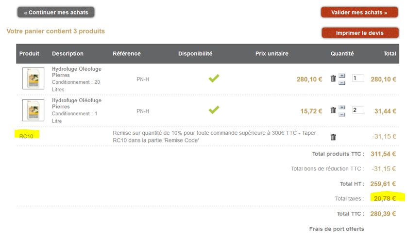 CERA ROC Posted July 7, 2015 Share Posted July 7, 2015 Bonjour, J'ai un gros souci depuis 2 jours et je ne trouve pas de solution!!! Sans aucune modification de ma part... mon site presta 1.4.3 bug Soit lorsque l'on tape le code remise... la TVA se modifie de 20% à approximativement 8%??? Je retire le code remise et cela revient à 20%... J'ai tout vérifié!!! Et même lorsque je supprime mon bon de réduction pour en créer un nouveau.... toujours le même souci!!! C'est à partir de 300€ que j'offre 10% de remise... j'ai remarqué que cela bug en 300€ et 350€.... au-dessus cela fonctionne!!! trop étrange!!!! Je ne sais plus quoi faire!!!! car c'est au niveau du panier... Merci de votre aide Link to comment Share on other sites More sharing options...