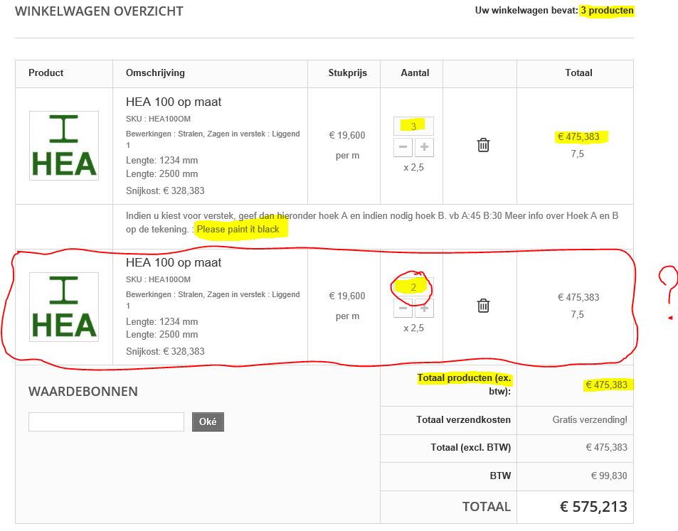 Martino00 Posted July 7, 2015 Share Posted July 7, 2015 I'm using PrestaShop 1.6.0.14. I have a product with customization text field. When i fill in the customization field and when i choose more then one piece of the product. The cart overview has one line with the name of the product. Below that the text of the customization And below that there is another line with the product name but this one has one item less then i ordered. I think it has something to do with the ajax-cart.js but i'm not sure. In attachement you can see an example of the cart overview. in the right corner you can see that there are only 3 products in the cart and also the total price is correct. Why is it displaying that last line in my cart overview. It only happens when i add more then one piece of the product and when i add customized text Link to comment Share on other sites More sharing options...