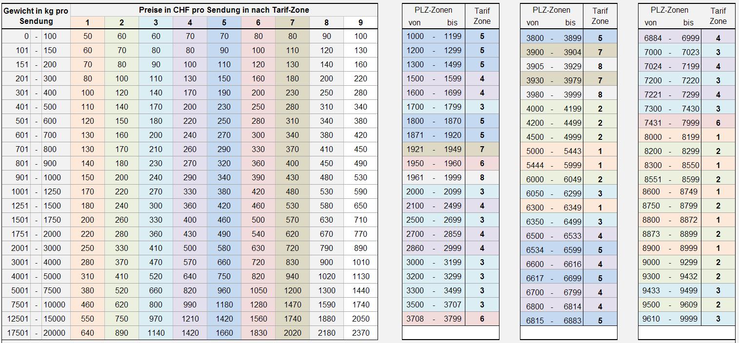 hansjuerg.arnold Posted July 8, 2015 Share Posted July 8, 2015 (edited) Hallo zusammen Ich möchte einen weiteren Lieferdienst hinzufügen - ein Transportunternehmen aus unserem Dorf, welche mir eine Preisliste für seine Transporte geliefert hat (siehe Anhang). Hierbei gibt es gewisse Gewichtsklassen, Postleitzahlen (PLZ von - bis) sind in Zonen aufgeteilt und das Ganze in Kombination ergibt einen Preis. Lässt sich dieses Modell mit Prestashop einfach abbilden ? Wenn JA, wie fange ich da am besten an ? Beste Grüsse Hansjürg Edited July 13, 2015 by hansjuerg.arnold (see edit history) Link to comment Share on other sites More sharing options...