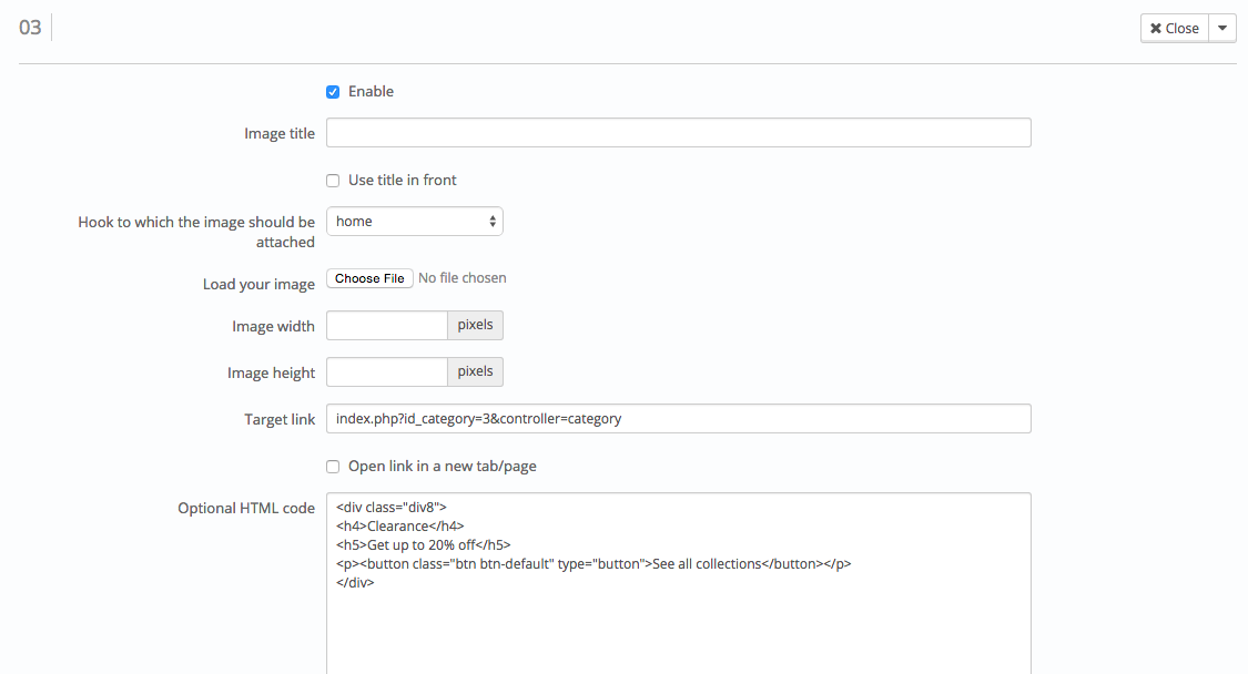 shacker Posted July 19, 2015 Share Posted July 19, 2015 ok, you mean the image slider, i was thinking in a module for that. you can try this free module https://www.prestashop.com/forums/topic/341681-free-module-newsletter-popup/ shows a popup and you can fill with your voucher code Link to comment Share on other sites More sharing options...