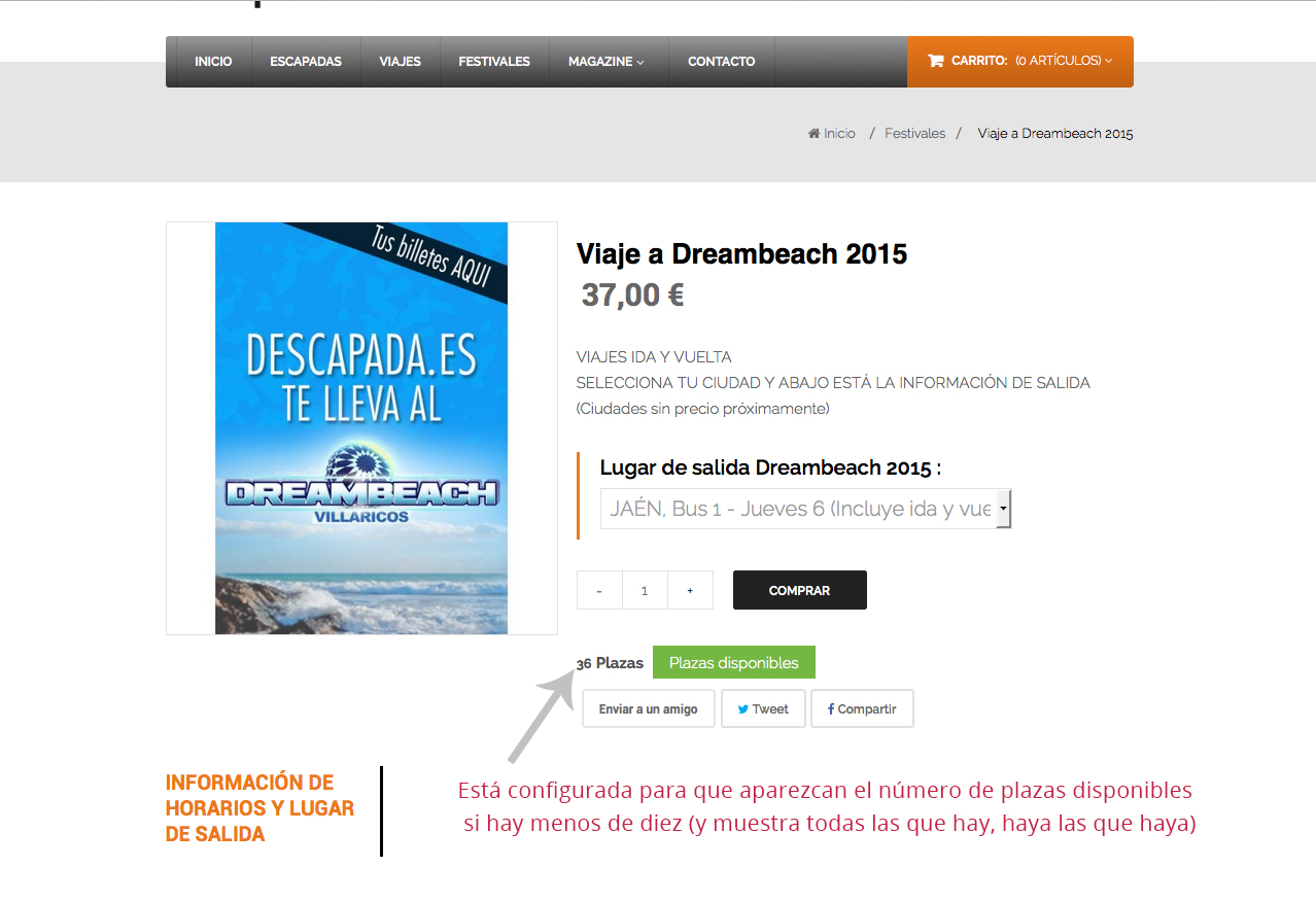 Nos muestra todas las plazas (productos) disponibles haya las que haya. Es decir, cuando quedan más de diez sigue mostrando el número de plazas.