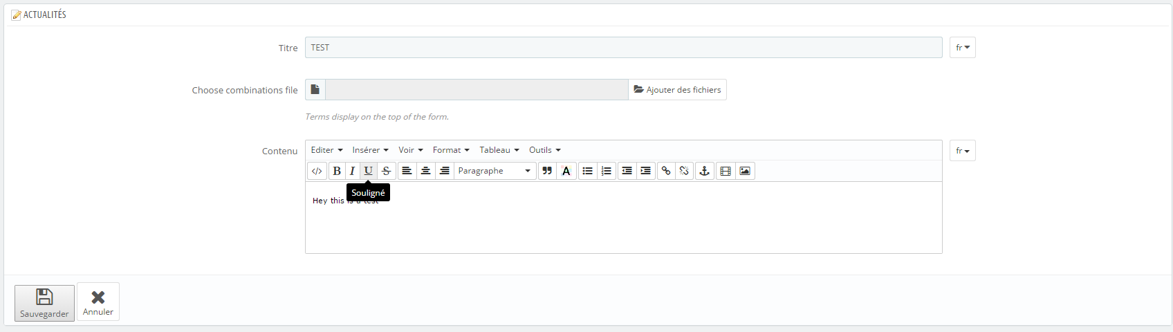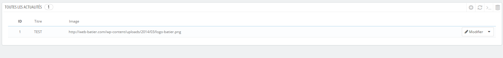 prestasafe Posted July 9, 2015 Share Posted July 9, 2015 Salut à tous, je mets à jour mon module d'actualités et je cherche à afficher une image dans le renderForm() et le renderList(); Voici mon renderForm() public function renderForm() { $this->fields_form = array( 'tinymce' => true, 'legend' => array( 'title' => $this->l('News'), 'image' => '../img/admin/edit.gif' ), 'input' => array( array( 'type' => 'text', 'lang' => true, 'label' => $this->l('Title:'), 'name' => 'title', 'size' => 40 ), array( 'type' => 'file', 'name' => 'image', 'multiple' => true, 'label' => $this->l('Choose combinations file'), 'desc' => $this->l('Terms display on the top of the form.'), 'lang' => true, 'id' => 'image' ), array( 'type' => 'textarea', 'lang' => true, 'label' => $this->l('Contenu:'), 'name' => 'txt', 'autoload_rte' => true, ) ), 'submit' => array( 'title' => $this->l('Save'), 'class' => 'button' ) ); if (!($obj = $this->loadObject(true))) return; $this->initToolbar(); return parent::renderForm(); } et mon renderList() public function renderList() { $this->addRowAction('edit'); $this->addRowAction('delete'); //$this->addRowAction('details'); $this->bulk_actions = array( 'delete' => array( 'text' => $this->l('Delete selected'), 'confirm' => $this->l('Delete selected items?') ) ); $this->fields_list = array( 'id_news' => array( 'title' => $this->l('ID'), 'align' => 'center', 'width' => 25 ), 'title' => array( 'title' => $this->l('title'), 'width' => 'auto', ), 'image' => array( 'title' => $this->l('Image'), 'width' => 'auto', 'image_id' => '' ) ); $lists = parent::renderList(); $this->initToolbar(); return $lists; } J'ai fouillé dans le AdminProducts, ça ramène sur le helperList qui ramène sur le HelperCore..; Fin bref si quelqu'un à dejà rencontré ça ça m'aiderai bien Merci d'avance. Je tiens à préciser que je suis dans un ModuleAdminController Link to comment Share on other sites More sharing options...