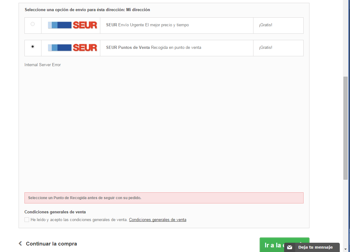javiermayorga Posted July 10, 2015 Share Posted July 10, 2015 Buenos días foreros, lo primero de todo agradecer a todos los que colaboráis activamente en el foro, sois una gran ayuda para los que estamos empezando en esto. Me ha surgido un problema con mi tienda y no soy capaz de encontrar ningún tipo de información al respecto ni detecto el problema con el firebug. Mi tienda es la siguiente está en prestashop 1.6.0.9. www.suenoszzz.com A la hora de ir a la caja y seleccionar mi transportista tengo activados el envío urgente y la recogida en punto de venta. Con el envío urgente no hay ningún problema, pero a la hora de seleccionar la Recogida en Punto de Venta dónde me debería cargar el mapa me sale el siguiente mensaje "Internal server error". He configurado el módulo Seur tal y como dicen los manuales, he instalado y desinstalado el módulo por si acaso y nada, me estoy volviendo loco y no se si realmente es problema de mi web, del hosting, o de SEUR... ¿Alguno sabéis algo de ello? Muchísimas gracias de antemano. Link to comment Share on other sites More sharing options...