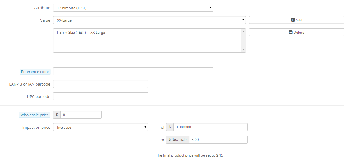 cbleisch Posted July 13, 2015 Share Posted July 13, 2015 I do not know if the issue I am having is the result of a the store configuration, or a bug in PrestaShop, but any help is greatly appreciated. When I add a new combination to a product and indicate that the "Impact on price" is an increase, and then enter amount, that amount is ignored. Instead, when the combination is saved it shows an increase of either $2.50 or $5.00. This happens for every combination. See the images below: Adding the combination Combination added, and price is overwritten You're my hero if you help me resolve this issue. Link to comment Share on other sites More sharing options...
